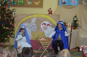 19 grudnia 2014r. uczniowie klasy I przygotowali przedstawienie bożonarodzeniowe dla swoich kolegów i koleżanek z oddziału "0" oraz klasy II. Pastorałki i scenariusz o narodzinach Jezusa w wykonaniu dzieci wprowadziły wszystkich w świąteczną atmosferę. Role Marii i Józefa odegrali gościnnie Natalia Socha i Filip Miotk, przedszkolaki z oddziału "0". Na jasełka zostali zaproszeni rodzice uczniów, którzy zorganizowali wigilię klasową.