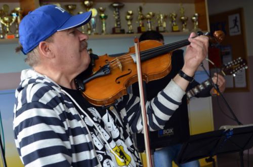 Dzisiejszy poranek nasi uczniowie zaczęli z piosenką na ustach. Stało się tak za sprawą Leszka Boliboka (skrzypka, wieloletniego muzyka orkiestry Teatru Muzycznego w Gdyni) oraz Rafała Rompcy (gitarzysty, lidera popularnego na Kaszubach zespołu Fukus). Nie była to pierwsza wizyta znakomitych muzyków, zatem dzieci wiedziały, że mogą liczyć na dobrą zabawę. Dość zróżnicowany repertuar obejmował irlandzką muzykę folkową, pieśni kaszubskie i szanty. Dla uczniów największą radością była możliwość współtworzenia widowiska, toteż często gościli na scenie. Gdy występ dobiegł końca z wielkim żalem pożegnaliśmy artystów, mając nadzieję, że nie był to ostatni koncert.