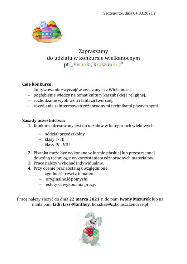 - Konkurs wielkanocny pt. "Pisanki, kraszanki..."