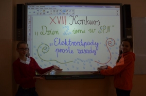 Uczennica klasy V naszej szkoły Marysia Stasiak zajęła I miejsce w XVIII edycji konkursu literacko-plastycznego pt.: "Dzień Ziemi w SPN", który organizowany jest od 1995 roku przez Słowiński Park Narodowy, w ramach obchodów Światowego Dnia Ziemi. Tegoroczna edycja konkursu odbyła się pod hasłem "Elektoodpady-proste zasady", czyli dotyczyła tematyki skupiającej wszystkich użytkowników sprzętu elektrycznego i elektronicznego, także tych najmłodszych, których szczególnie trzeba uczulić na niebezpieczeństwa, związane z tego typu odpadami. Opiekunem konkursu była nauczycielka przyrody pani Ewa Gwiazda. Konkurs odbywał się w dwóch kategoriach wiekowych, w klasach I-III oraz IV-VI. W konkursie ucestniczyła również Natalia Horbacz z klasy V. Konkurs cieszył się, jak co roku, ogromnym zainteresowaniem. W sumie wpłynęło 138 prac ze szkół podstawowych. Nasza laureatka już wkrótce otrzyma atrakcyjną i cenną nagrodę za swój wspaniały talent. Gratulujemy!!!