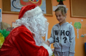 Powszechnie wiadomo, że Święty Mikołaj to bardzo zapracowany człowiek. Na szczęście znalazł trochę czasu i pojawił się u nas w swoje imieniny. Ów miły gość nie ma w zwyczaju przybywać z pustymi rękami, co wiedzą wszystkie grzeczne dzieci. Nie inaczej było i tym razem. Święty Mikołaj nieco się spieszył, więc w rozdawaniu prezentów pomogli mu przedstawiciele Rady Rodziców. Dzięki ich uprzejmości Święty mógł sobie dłużej porozmawiać z naszymi uczniami. Nie wiadomo jakie tematy poruszano i na ile szczere były to rozmowy. Mamy jednak nadzieje, że nasi podopieczni nie zapomnieli powiedzieć o zbiórce charytatywnej pn. „Czekoladowa akcja. Podaruj Mikołaja!”, w której brali czynny udział. W ostatnim tygodniu nasza młodzież nieco wyręczyła naszego gościa, wykazując się niebywałą hojnością. Podejrzewamy, że to właśnie dlatego Święty znalazł dla nas tych kilka chwil.