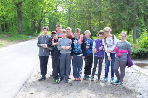 Uczniowie klasy V wyruszyli na wycieczkę edukacyjno-przyrodniczą do lasu w Szczenurzy pod opieką pani Ewy Gwiazdy. Naszym przewodnikiem po lesie był pan leśniczy Piotr Mikuła. Tym razem piątoklasiści zostali zapoznani z pracami, jakie wykonywane są w lesie. Każdy miał okazję zobaczyć, jak wygląda drzewostan rębny. Wycina się tu gniazda o wielkości 20-30 arów. Pozostały starodrzew zostaje. Pan Mikuła tłumaczył, że na gniazdach drzewostan sztucznie odnawia się dębem. Po uzyskaniu odpowiedniego wzrostu i zwarcia przez dęba (młodnika) wycina się starodrzew i resztę powierzchni odnawia się gatunkami szybko rosnącymi, typu sosna modrzew, czy brzoza.