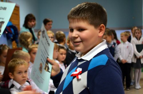 Dziś w naszej szkole odbył się uroczysty apel z okazji Narodowego Święta Niepodległości. Miejsce zebrania udekorowano trzema symbolicznymi krzyżami, pod którymi zapłonęły znicze. Wszystko odbyło się zgodnie z kilkunastoletnią tradycją. W takiej atmosferze wszyscy uczniowie odśpiewali hymn, po czym na scenę wkroczyli młodzi aktorzy. Przedstawienie obejmowało wątek fabularny, recytacje oraz patriotyczne pieśni. Po występie nagrodzono laureatów ostatnich konkursów. Apel zakończono ponownym odśpiewaniem fragmentu hymnu.