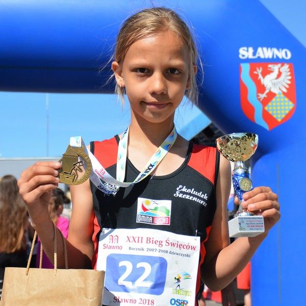 W Biegu Święców w Sławnie (woj.zachodniopomorskie) kolejne sukcesy świętowały nasze reprezentantki. Organizatorzy przygotowali dość krótkie dystanse, które preferowały sprinterskie umiejętności. Świetnie spisała się Oliwia Hermann, która była druga na 300m w rocznikach 2007-8. Jeszcze na 50 m przed metą Oliwia prowadziła, ale ostatecznie tuż przed metą została wyprzedzona. W rywalizacji roczników 2009-10 na czwartej pozycji finiszowała Weronika Wańdoch Dubaj i podobnie jak Oliwia także została nagrodzona.