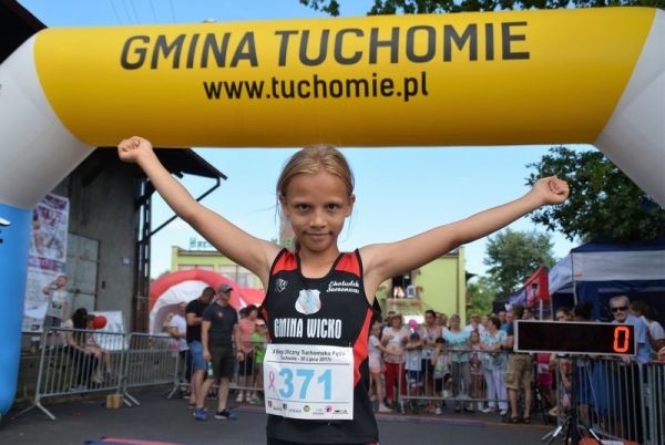 W temperaturze 30-stu stopni rozegrano w niedzielne popołudnie zawody biegowe Tuchomska Pętla. Pomimo wakacji dopisała frekwencja. Biegi po rozgrzanym asfalcie wymagały niemałej odporności od młodych zawodników. Tuchomie po raz drugi okazało się szczęśliwe dla Oliwii Hermann. W 2015 roku jako drugoklasistka triumfowała w Cross Festiwalu pokonując 50 rywalek. Tym razem zawodniczek w rocznikach 2007-8 było mniej, ale triumf na 400m bardzo cieszy. Szczególne powody do radości miał Ojciec chrzestny Oliwii Pan Bartek, który dzielnie wspierał swoją chrześniaczkę.