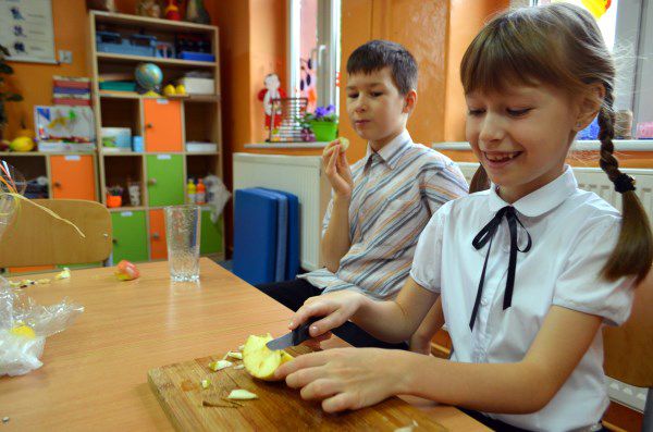 Jak dowodzą badania spożycie owoców i warzyw w okresie jesienno - zimowym znacznie spada. Z uwagi na to w klasie II przeprowadzono lekcję propagującą zdrowe odżywianie. Dzieci same przygotowywały soki i przekąski zatem znacznie chętniej je później konsumowały. Dzięki dobrej zabawie udało się nieco przemóc ogólną niechęć młodzieży do sięgania po warzywa i owoce.