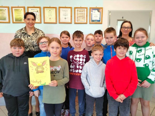Przed Niedzielą Palmową w klasie trzeciej trwał gorący tydzień. Mnóstwo gałązek, kwiatków z papieru i pracowite dzieci, które po zajęciach lekcyjnych zaplatały piękne palmy wielkanocne. A to wszystko dla Tosi Dybowskiej. Zajączek wielkanocny sprawił jej piękny prezent:)