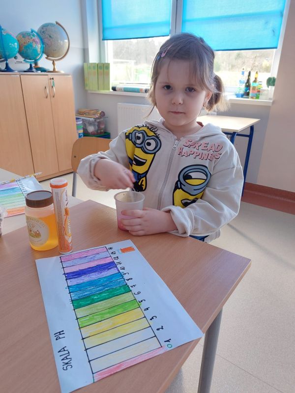 W tym tygodniu Superdzieciaki wykonywały sztuczki z czerwoną kapustą. Dzięki temu poznały na czym polega skala pH, jak ważna w życiu jest wiedza o odczynach substancji. Kwasy nie są naszymi sprzymierzeńcami, a substancje o odczynie zasadowym najczęściej znajdują się w chemikaliach.