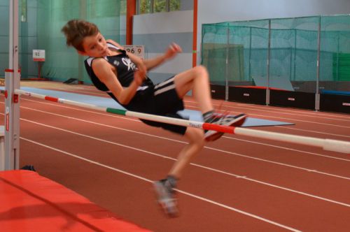 W słupskiej hali najwyżej z naszych zawodników skakał Konrad Szczepaniak.