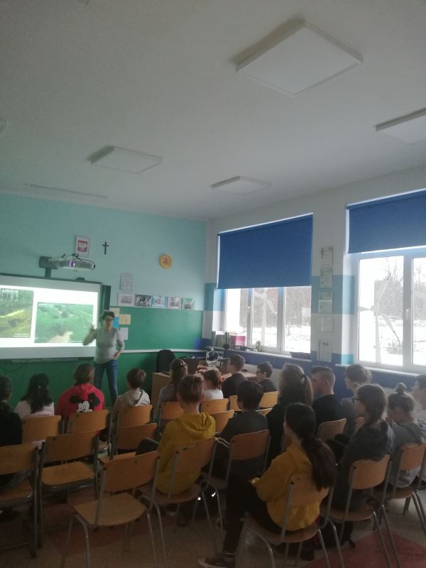 29 stycznia 2020 roku wczesnym porankiem odwiedziła naszą szkołę znana i lubiana przez naszych uczniów pani Katarzyna Sitkowska. Tym razem pani Kasia przygotowała prezentację na temat "Bocianów". Nie od dziś wiadomo, że te zwierzęta wzbudzają w nas pozytywne emocje. Największe jednak zdziwienie to ich pożywienie, gdyż każdy ma przeważnie na uwadze żaby, jako główny składnik ich menu. Natomiast prawda jest taka, że te ptaki preferują głównie myszy, pijawki, dżdżownice, szczury, czy też małe zające oraz krety. To nie jedyne ciekawostki, które dzieci na pewno zapamiętają z tego spotkania. Wszystko było niezwykle ciekawe, ale tego doświadczyli uczestnicy spotkania, dlatego już w lutym zaprosiliśmy panią Sitkowską na kolejne spotkanie.