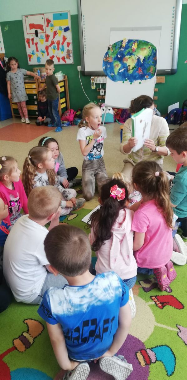 W dniu 30 maja odbyło się kolejne spotkanie dla przedszkolaków w ramach projektu Przedszkolaki Superdzieciaki. Tym razem dzieci poznały mieszkańców łąki. Naśladowały sposób poruszania się zwierząt i rozpoznawały mieszkańców łąki po odgłosach. Ćwiczyły grafomotorykę, rysując muszlę ślimaka. Klasyfikowały przedmioty od największego do najmniejszego. Najwięcej frajdy sprawiły dzieciom zabawy ruchowe Spacer po łące oraz Muchy i pająk.