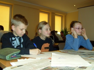Marcelina Kirszling, Maria Stasiak oraz Jakub Antoszek mieli sposobność zaznajomić się z lokalnymi wydawnictwami Dziennika Bałtyckiego. Nie był to jednak zwykły przegląd prasy, bowiem należało zwrócić uwagę na szatę graficzną, stylistykę artykułów, oraz treść fotografii. Po wymianie spostrzeżeń przyszedł czas na samodzielne próby dziennikarskie. Uczniowie podzieleni na grupy musieli znaleźć odpowiednio ciekawy temat, stworzyć nie mniej interesujący tekst, oraz zastanowić się jakie zdjęcia przykują uwagę potencjalnego czytelnika. Wybrane efekty pracy zostaną opublikowane na łamach Echa Ziemi Lęborskiej.