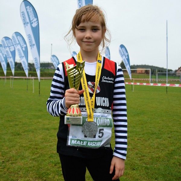 Dobiega końca tegoroczny cykl Małe Kaszuby Biegają. Przedostatnie zawody zorganizowała Gmina Somonino. Pomimo deszczowej aury dopisała frekwencja. W rywalizacji dziewcząt rocznika 2009 na starcie stanęło 25 zawodniczek, a wśród nich Weronika Wańdoch-Dubaj. Nasza reprezentantka dobrze rozłożyła siły na dystansie 400m i pewnie zajęła trzecie miejsce. Trochę pechowo startowała Oliwia Hermann, która na ostatnich metrach "spadła" z drugiego na czwarte miejsce.