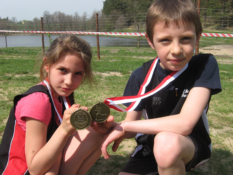 Kinga i Konrad z pamiątkowymi medalami.