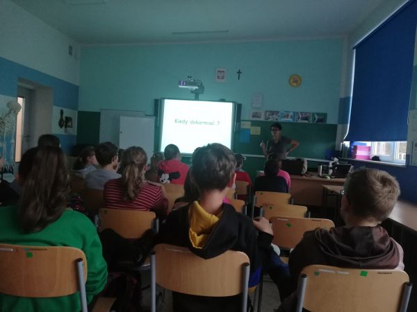 Dnia 25 października 2019 roku naszą szkołę odwiedził specjalny gość ze Słowińskiego Parku Narodowego pani Katarzyna Sitkowska. Przygotowała dla uczniów klas starszych dwie prezentacje "Komary" oraz "Czy dokarmiać ptaki zimową porą?" Podczas prezentacji o komarach pani Sitkowska uświadomiła uczniom, że chociaż nie są lubianymi zwierzętami, to stanowią pokarm dla innych organizmów np. ryb, nietoperzy, czy ptaków, a zwłaszcza dla jeżyków. Jeżeli chodzi o kwestię dokarmiania, to należy dokarmiać ptaki, ale tylko zimą i odpowiednim pokarmem np. kaszą, ziarnem słonecznika, płatkami owsianymi. Następne spotkanie odbędzie się już w listopadzie.