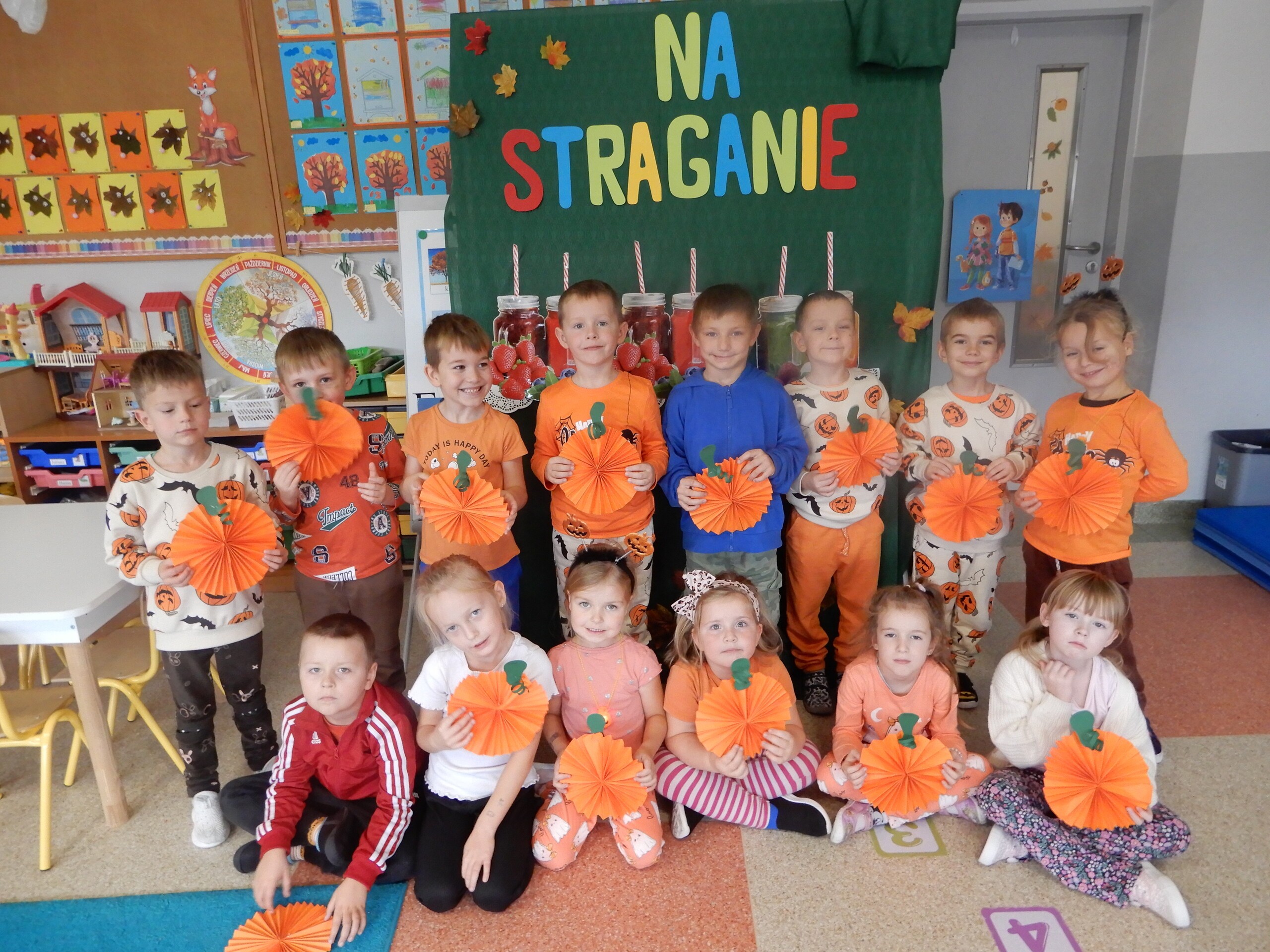 30 października obchodziliśmy w przedszkolu Dzień Dyni. Dzieci przyszły przebrane i ubrane na pomarańczowo. Obejrzeliśmy film edukacyjny związany ze świętem i częstowaliśmy się słodkościami w kolorze dyni. Na zakończenie dnia wykonaliśmy prace plastyczne.