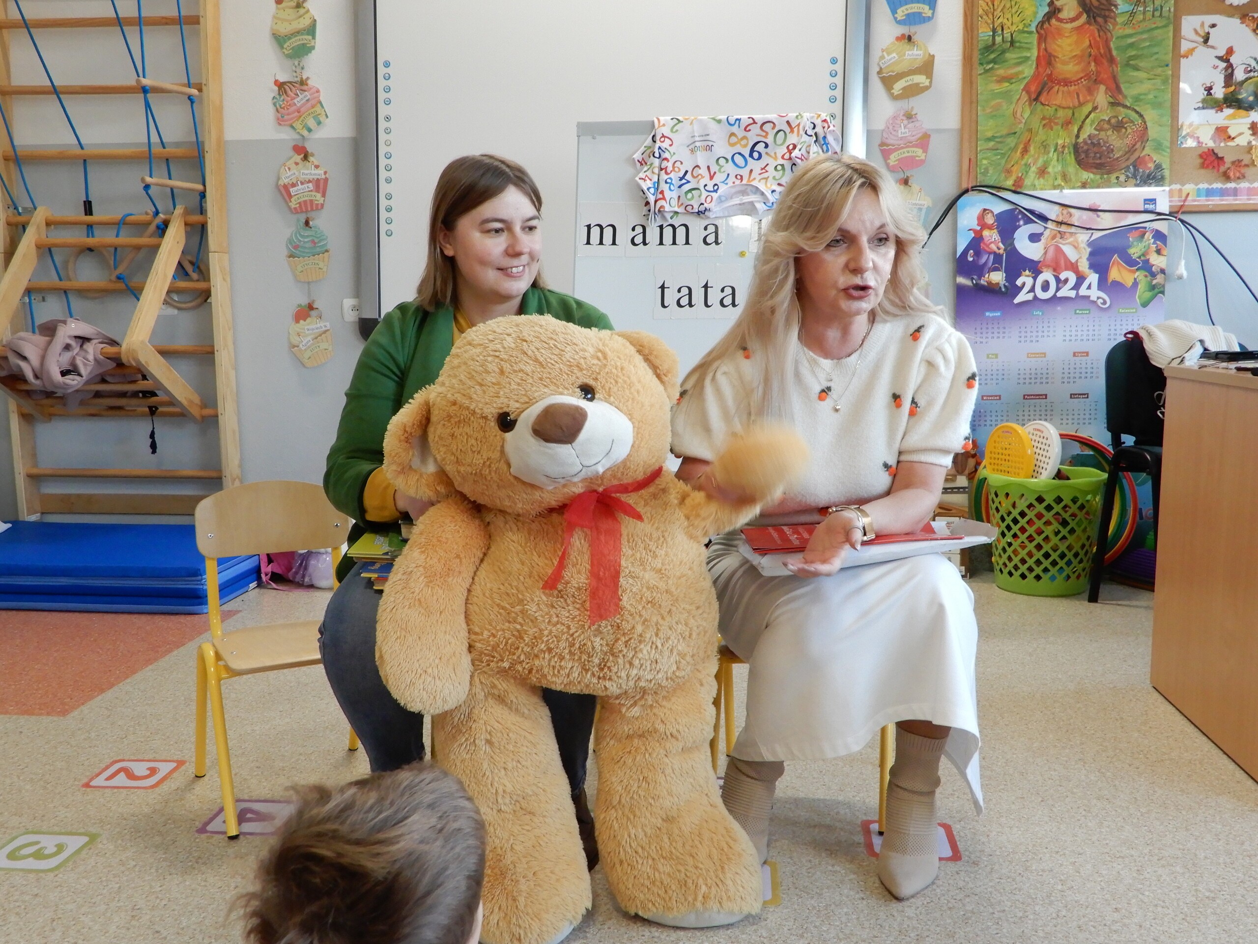 25 listopada świętowaliśmy Dzień Pluszowego Misia. W tym dniu razem z dziećmi zawitały do przedszkola wszystkie ulubione pluszaki. Gościliśmy na zajęciach Panie Iwonkę i Agatę z Gminnej Biblioteki w Wicku. Przywiozły do nas ogromnego Misia Tulisia, do którego każde, chętne dziecko mogło się przytulić. Rozwiązywaliśmy trudne zagadki, których bohaterem był MIŚ. Wysłuchaliśmy ciekawej historii, uczestniczyliśmy w wielu zabawach. Jedliśmy smaczne Misie Haribo. To był bardzo udany dzień.