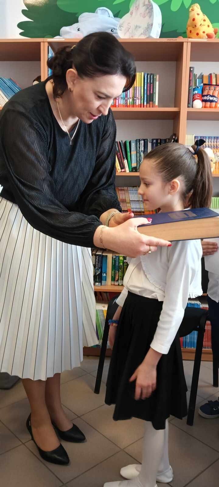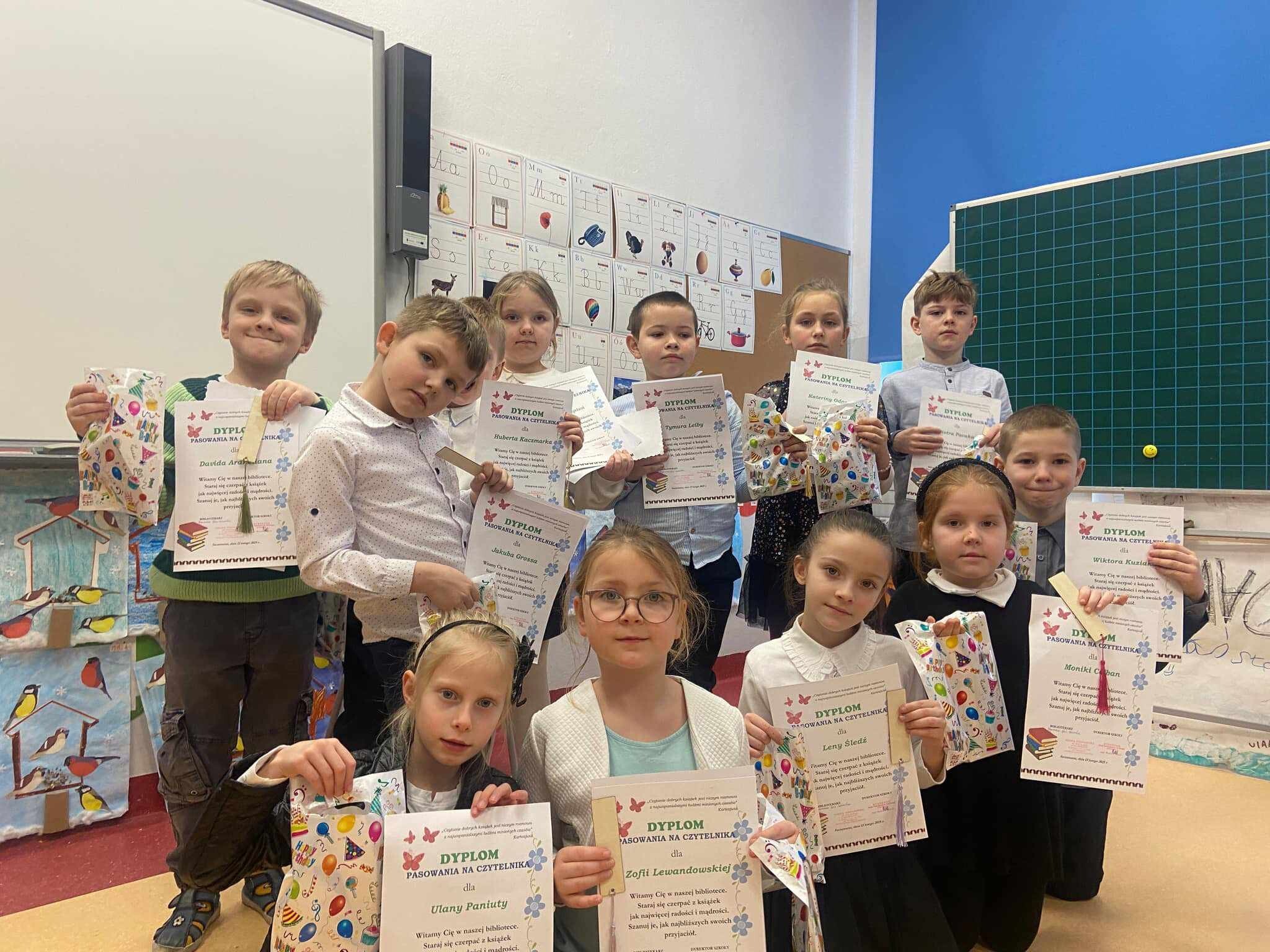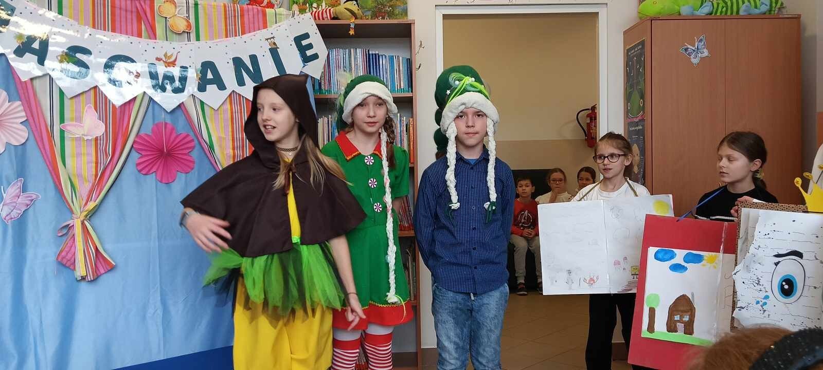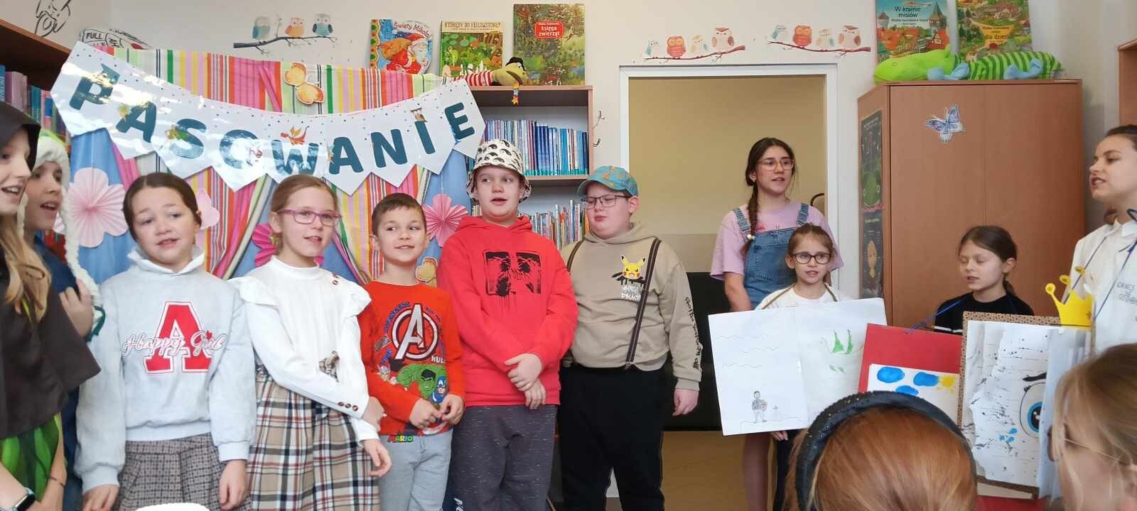 13 lutego odbyło się "Pasowanie na Czytelnika" dla klasy pierwszej. To bardzo ważne wydarzenie w edukacji pierwszoklasistów. Z tej okazji klasa trzecia z wychowawczynią przygotowali przedstawienie, które miało na celu nauczenie dzieci, jak należy dbać o książki i szanować bibliotekę. Wykorzystali kreatywność, by przedstawić co należy robić, a czego nie. Dzieci otrzymały kodeks czytelnika, a rodzice kontrakt wspierania dziecka w czytaniu. Pani Dyrektor pasowała uczniów, wręczyła dyplomy i nagrody. Od dziś oficjalnie wkroczą w literacki świat.