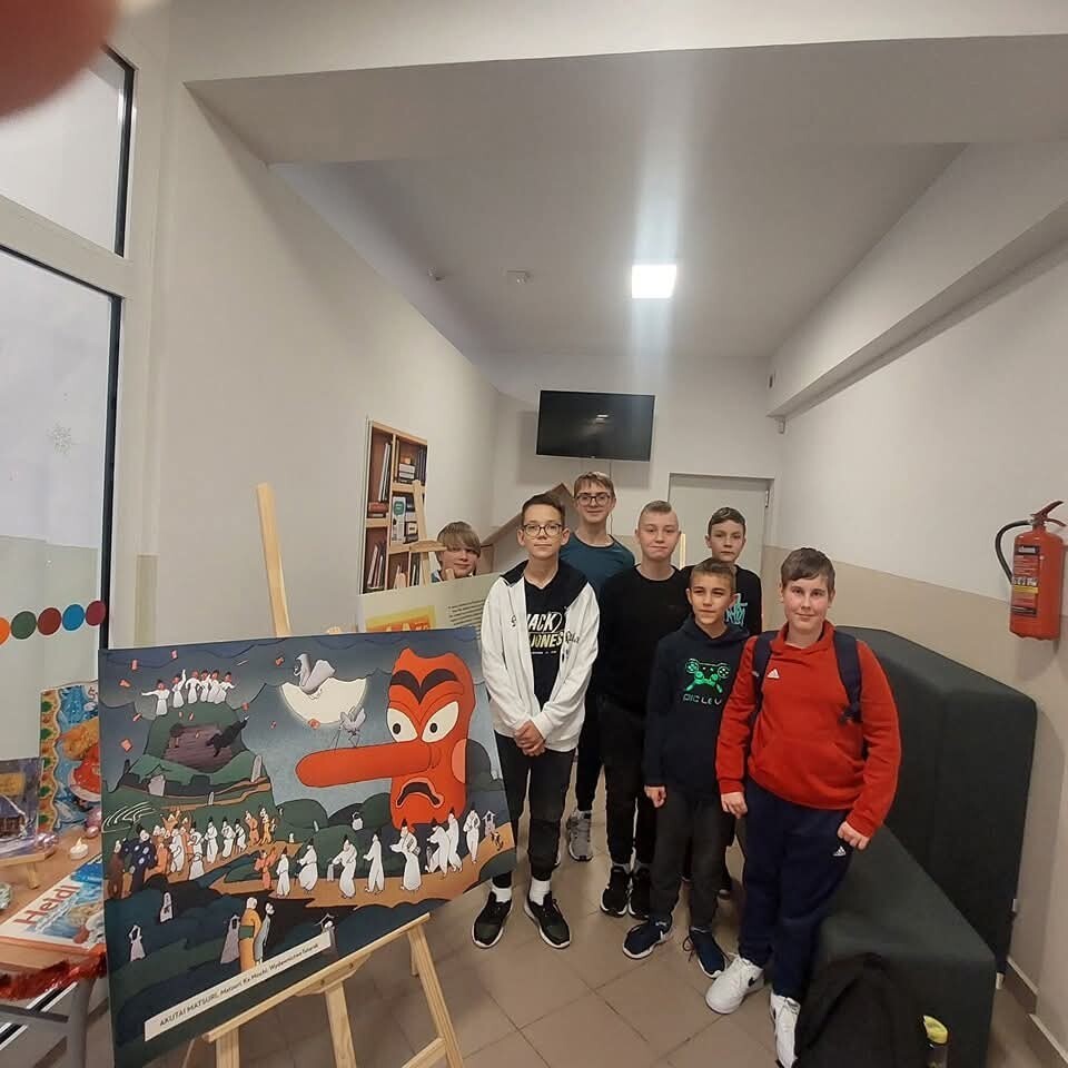 Biblioteka szkolna zorganizowała w grudniu wystawę ilustracji do książki "Matsuri" Ka Mochi. Inicjatywa była możliwa, dzięki naszej współpracy z Wydawnictwem Tatarak. Ta bogato ilustrowana książka, przybliżyła uczniom obyczaje Japonii i spotkała się z dużym zainteresowaniem.