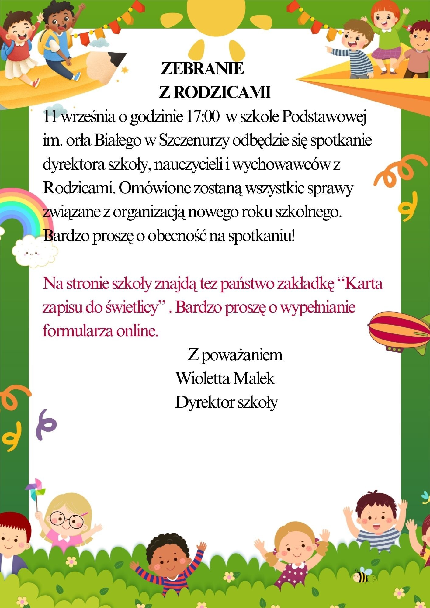 KOMUNIKAT DLA RODZICÓW/PRAWNYCH OPIEKUNÓW